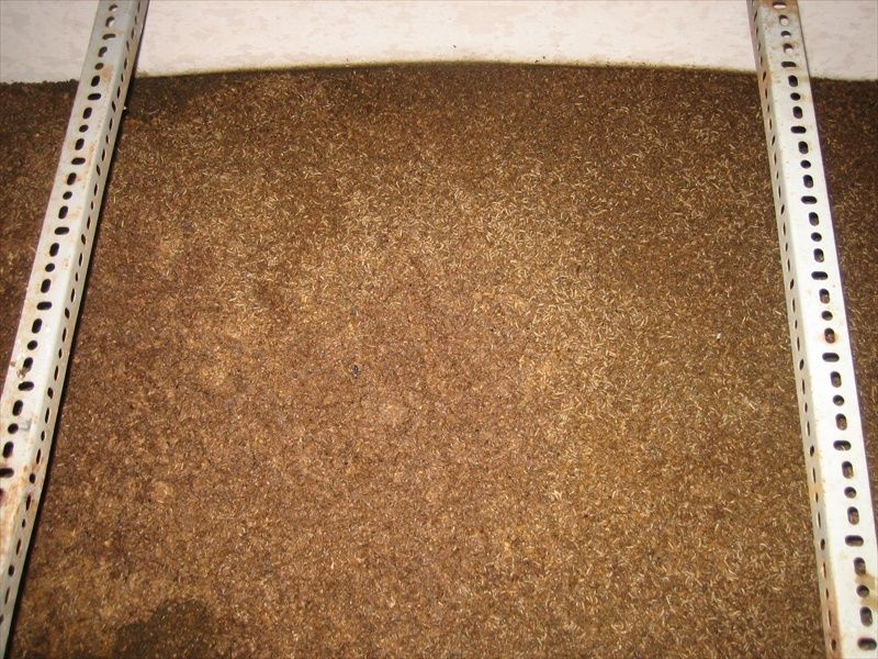 Thức ăn là phân bò tươi và hỗn hợp hèm-xác mì. Mỗi ngày cho vào khoảng 15.000 con giống (ấp từ 30 ổ trứng trong 7 ngày). Từ vài ngày nay đã bắt đầu cho thu hoạch khoảng 500-600g/ngày. Nhộng đen thu được có kích thước nhỏ, có lẽ do thùng nuôi còn trong quá trình ổn định và mình cũng cho tụi nó ăn chưa đủ. Mỗi ngày mình hớt bớt lớp dư chất trên cùng để lọc đem bón rau, và giúp giữ cho lớp dư chất trong thùng không dày lên quá nhanh, chỉ ở mức trên dưới 20cm.