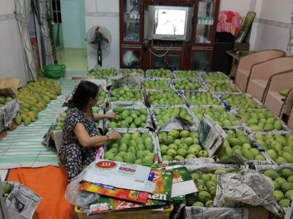 Vì lí do không người trông coi, gia đình mình bán đất vườn trồng xoài cát hoà lộc đang thu hoạch.