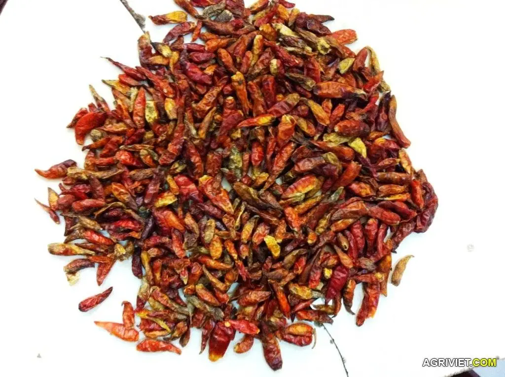 * Ớt 2 mũi tên khô nguyên trái đã lặt cuốn: (độ dài từ 3-5cm, độ ẩm dưới 12%, màu sắc tự nhiên không phẩm màu).