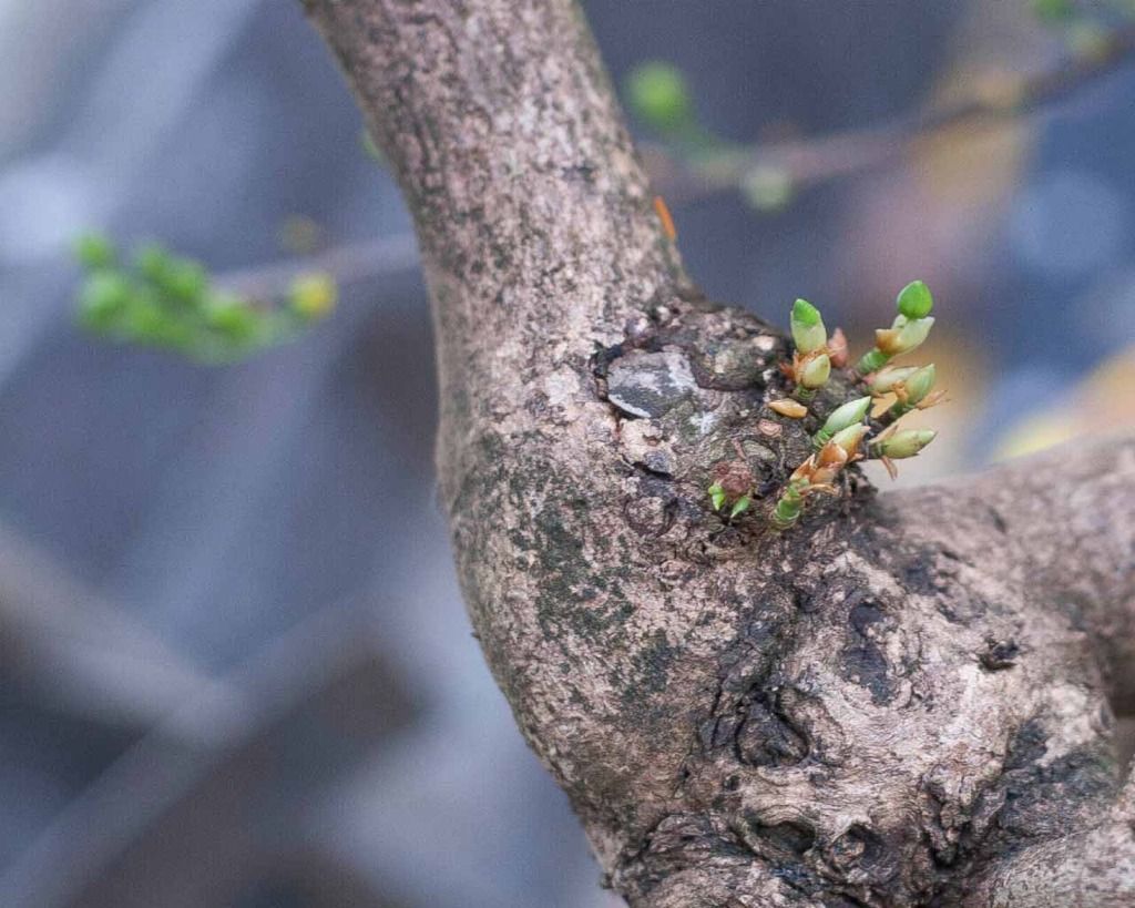 Nếu cây phát triển hoàn toàn...thì chỗ cái tược thừa bị cắt gần sát gốc đó sau này sẽ kết nụ ...có vài nở hoa ngay sát thân cũng đẹp lắm chứ :