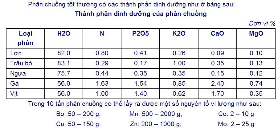Lân trong phân bò thua phân gà vịt gần 10 lần…v..v