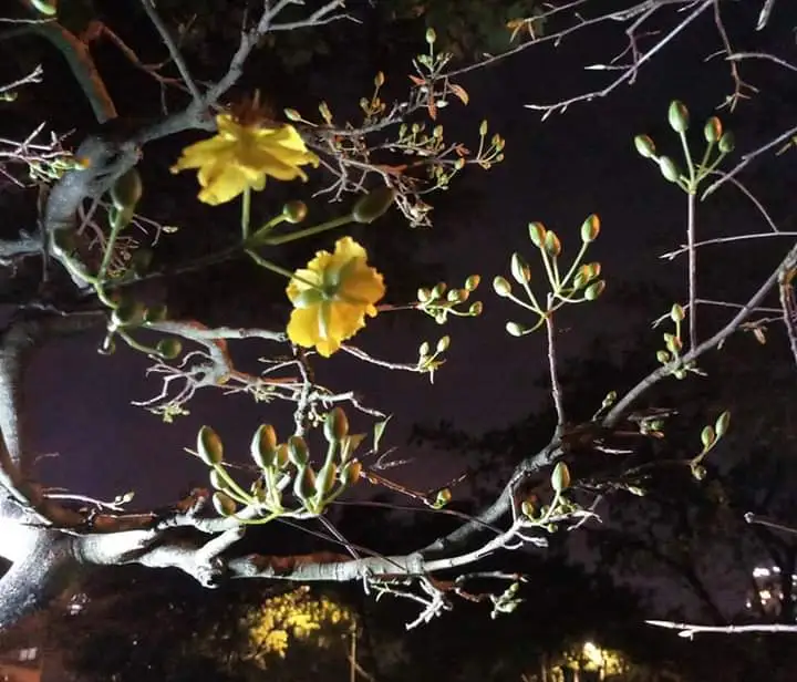 Năm nay Sài Gòn nắng nóng. Mình lặt lá mùng 9, đến 14 nụ đã bung vỏ lụa. Năm ngoái lặt lá 14,15 bị dính 02 cơn mưa, nụ bung lụa trễ 02 ngày.