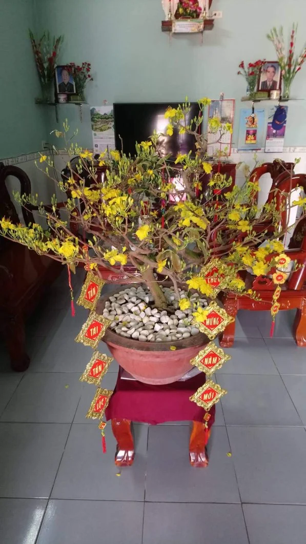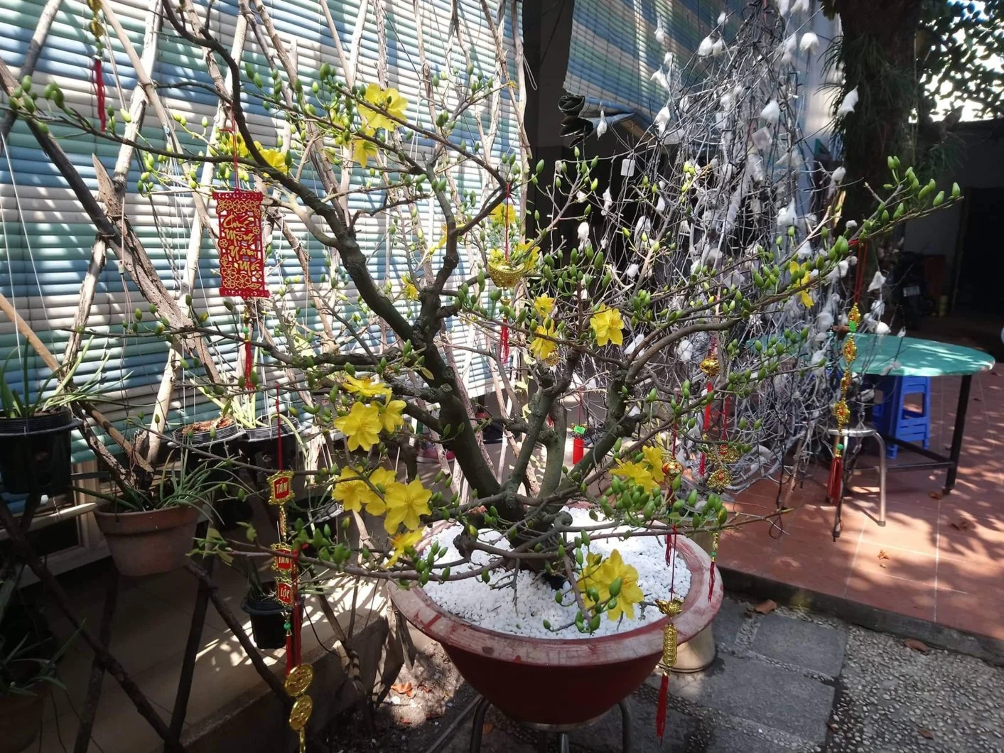 Trong nhà mình không chuwng mai... từ xưa khi ông Cụ còn sống vẫn vậy, chỉ để bậc thềm nhà, đến mình cũng chỉ chưng thềm nhà và ngoài sân, sân thượng, vỉa hè phố... Năm nay có thể sẽ thay đổi... chăm các cây nho nhỏ chưng các góc nhà, bàn trà...