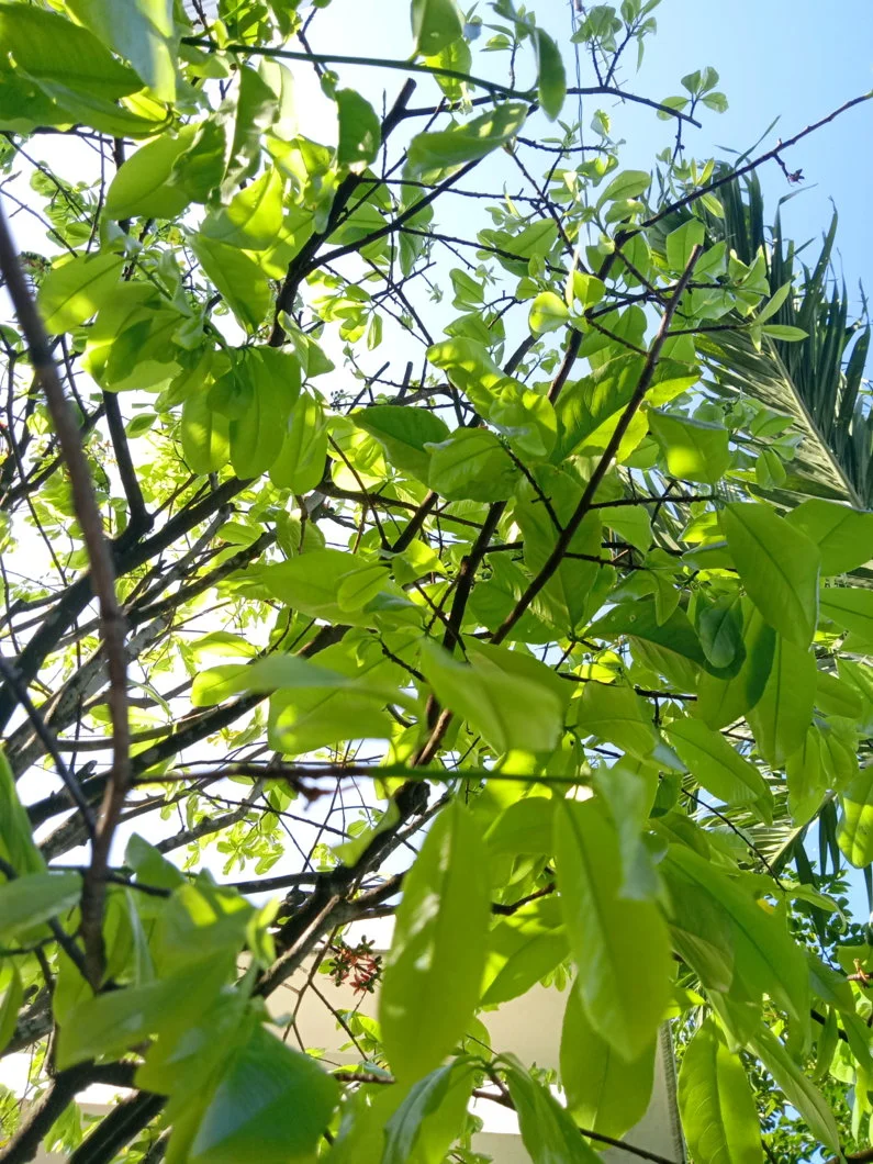 Mới mấy hôm nằm viện, các cháu ở nhà chỉ có tưới, phun nước lã mỗi sáng cho cây mà chắc do cây có lực do được chăm sóc đúng cachs năm rồi nên bộ lá nhìn đã manh nha một mùa vàng bội thu, hình chộp giờ ngọ hôm nay...