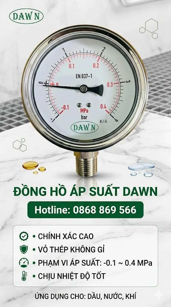 Toàn Quốc DAWN Pressure Gauge – Chuẩn Đo Áp Suất Công Nghiệp