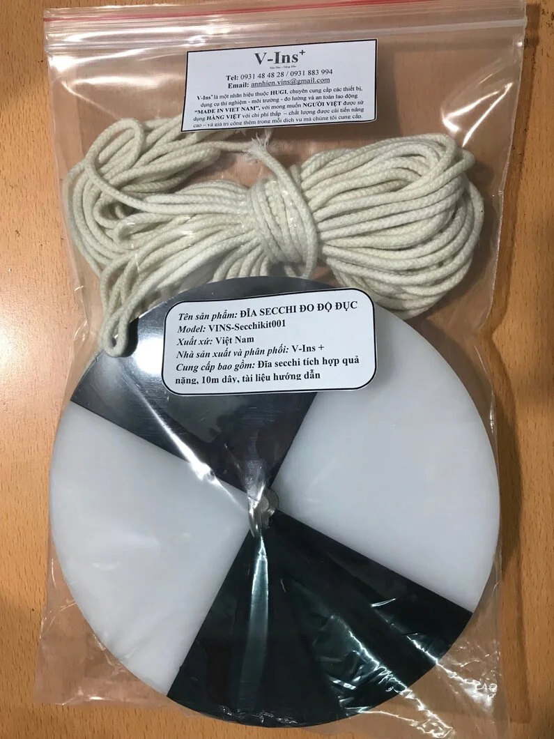 - Thành phần cung cấp bao gồm: Đĩa secchi, 10m dây rọi, quả nặng bằng inox 304