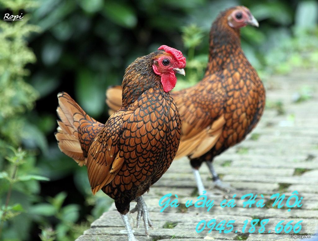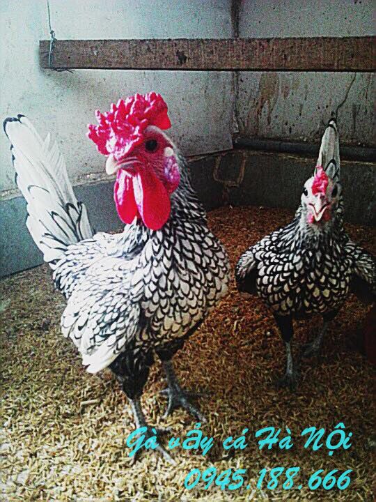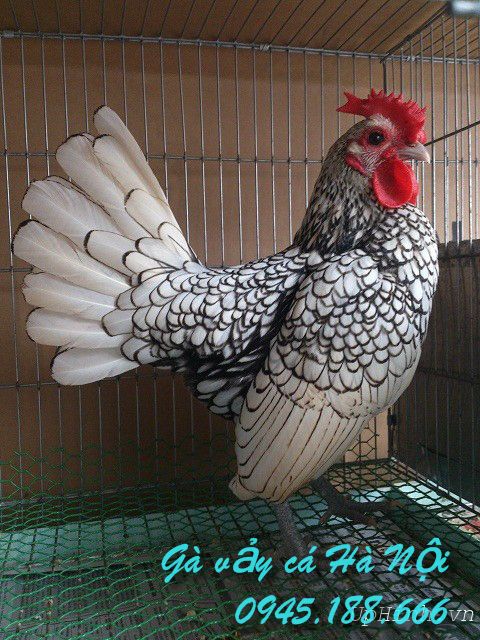 Trong những cuộc thi gà thì có yêu cầu gà trống dưới 620 gram, gà mái dưới 510 gram. Gà trống không được có lông bờm dài, không có lông mã (mã lại), không có lông phụng, chúng phải có mồng trà, lưng ngắn, đầu và đuôi cao gần như nhau, màu nền, gồm màu vàng (gold) và trắng (silver) phải sạch và mỗi lông đều phải có viền vảy cá màu đen tuyền (không được có bông, đốm). Lông đuôi cũng phải có viền (tuy rất hiếm) và các viền ở cánh phải đen và rõ. Gà mái cũng phải có đặc điểm tương tự.[4] Một bầy gà vảy cá cần rất ít thức ăn so các giống gà khác, trong trường hợp gà được thả rông trong sân, vườn hoặc ngoài đồng, gà vảy cá bới tìm thức ăn trong sân vườn. Là giống gà tuyệt vời để nuôi kiểng, trẻ em có thể chơi với chúng và một khi gà càng được chơi nhiều thì chúng càng dạn người.