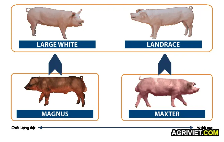 Với một danh mục con giống đầy đủ dòng heo làm mẹ và dòng heo làm cha được tạo ra phù hợp với điều kiện thổ nhưỡng Việt Nam trên nền tảng những heo giống tốt nhất trên thế giới. Mục tiêu của chúng tôi rất đơn giản: sản xuất heo phát triển mạnh trong mọi điều kiện để hỗ trợ sản xuất thịt heo ở chi phí tối thiểu. Chúng tôi tin tưởng mạnh mẽ bởi những công nghệ di truyền tiên tiến nhất đang được áp dụng tại các trại hạt nhân của mình.