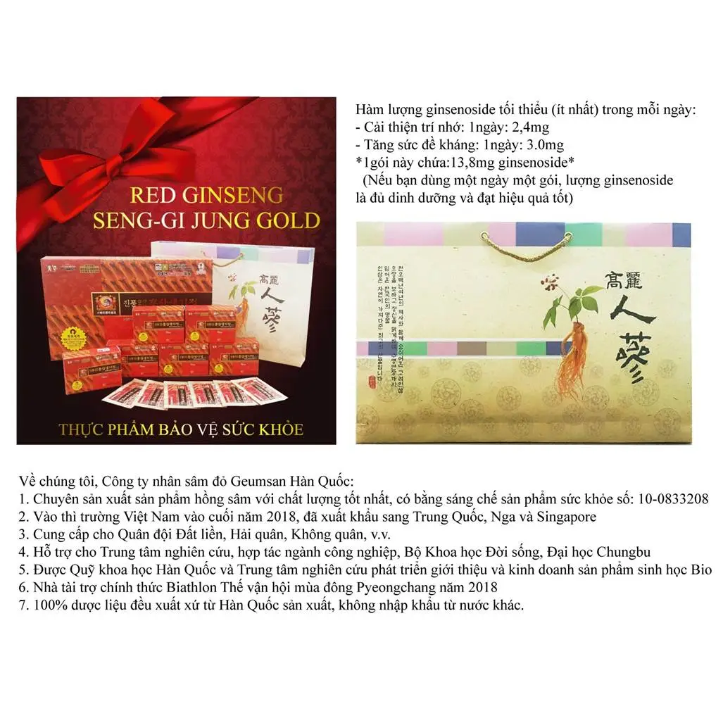 - Sản xuất tại: GUMSAN KOREA RED GINSENG CO., LTD