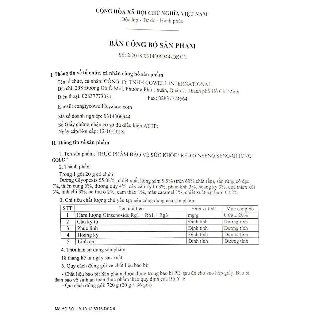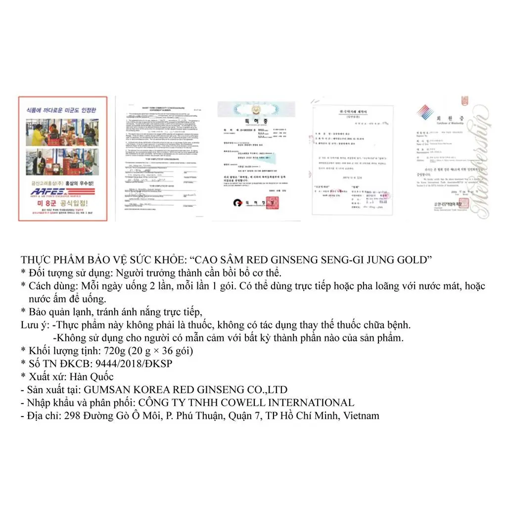 THỰC PHẨM BẢO VỆ SỨC KHỎE: “CAO SÂM RED GINSENG SENG-GI JUNG GOLD”