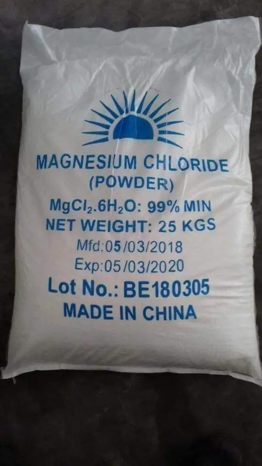 - Magie Clorua có công thức hóa học là MgCl2.6H2O, dạng vảy/bột màu trắng, hòa tan cao trong nước, ít tan trong acetone, không bắt lửa.