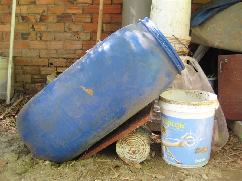 Xô thu trứng: chứa những thứ bốc mùi càng hôi càng tốt (ruột, đầu cá, máu heo, đầu tôm, phân heo...), treo các mảnh cac tông lên vách xô, cách lớp rác bên dưới khoảng 5cm. Trứng được thu hằng ngày vào chiều tối, cho vào hộp nhựa phun ẩm trong 40-45h sau đó cho vào thùng chứa thức ăn. Sau 5-6 ngày mới trút vào bể nuôi (đang nuôi ấu trùng). Nếu trứng chưa nở mà trút vào bể nuôi, ấu trùng trong đó sẽ xơi luôn trứng.