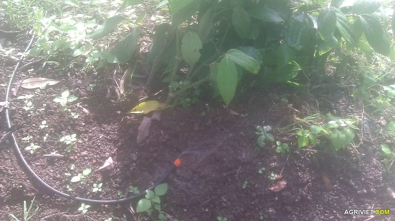 Để đi vào cụ thể, chúng ta sẽ thiết kế vườn tiêu nhà anh Việt với hai phương thức: tưới nhỏ giọt và tưới phun tia:
