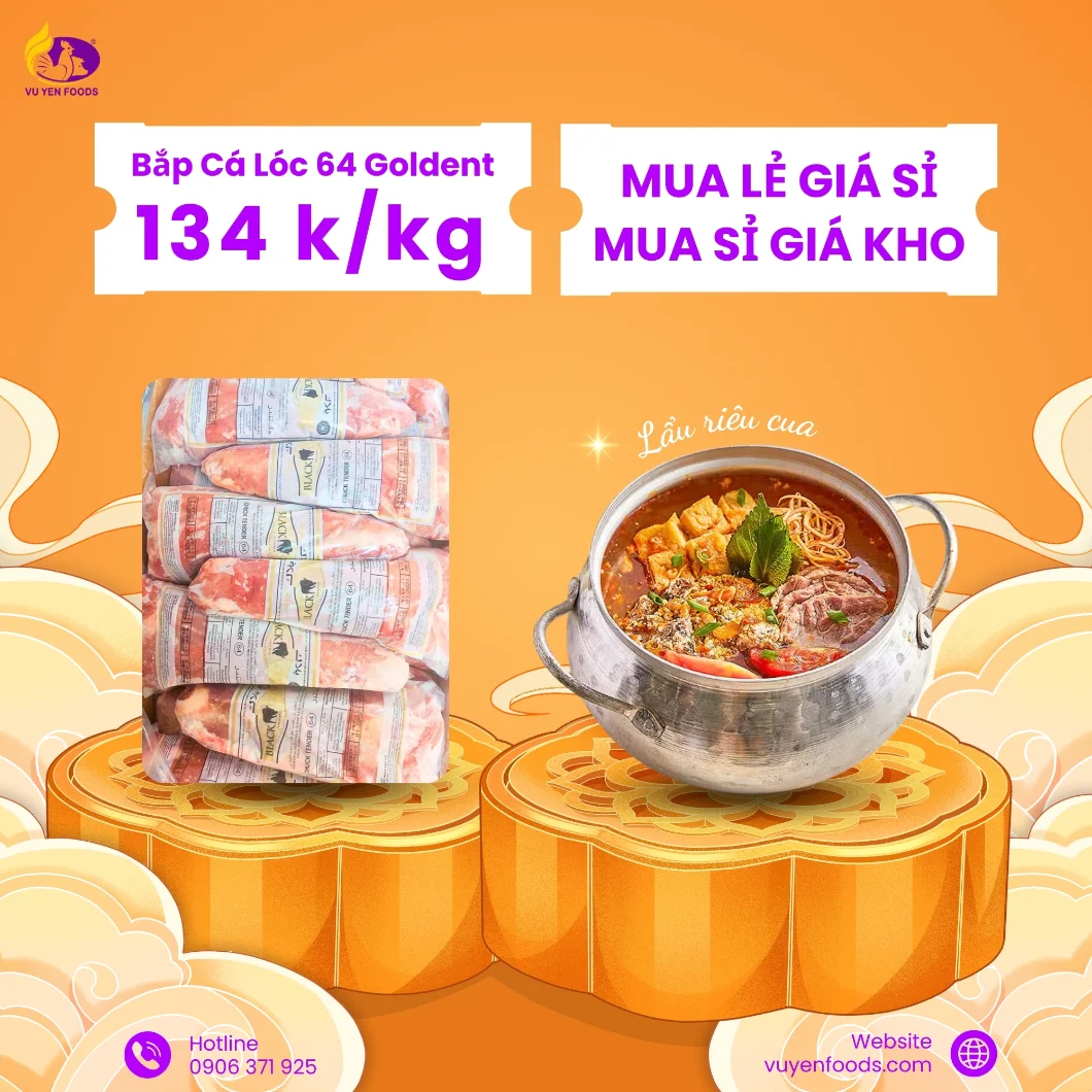 3.5. Lẩu Riêu Cua – từ Bắp Bò Cá Lóc GoldentVới tiết trời se lạnh của mùa thu, một nồi lẩu ấm nóng sẽ là lựa chọn tuyệt vời cho bữa tiệc đoàn viên. Lẩu riêu cua với vị thanh mát của riêu cua đồng, vị chua dịu của dấm bỗng và nước dùng ngọt từ xương, kết hợp cùng các nguyên liệu nhúng lẩu đa dạng như sườn sụn, chả, đậu, và đặc biệt là bắp bò cá lóc Goldent sẽ mang đến một trải nghiệm ẩm thực vô cùng phong phú. Bắp bò cá lóc (chuck tender) là phần thịt nằm ở vai gần cổ bò, có độ mềm ngon, thích hợp để nhúng lẩu, giúp món ăn thêm phần trọn vẹn. Mặc dù không phải là món ăn truyền thống, lẩu riêu cua là một sự kết hợp sáng tạo, đem đến không khí ấm cúng và gắn kết cho mâm cỗ Trung thu hiện đại.