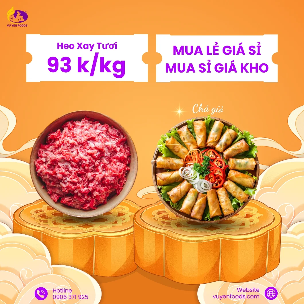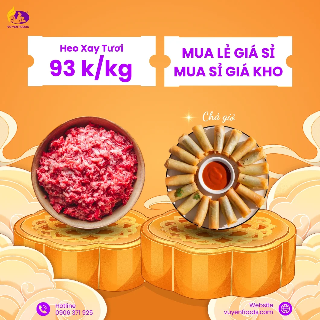 3.4. Chả Giò Chiên Giòn – từ Thịt Heo Xay Tươi Chả giò là món ăn quen thuộc, được cả người lớn và trẻ nhỏ yêu thích, và gần như không thể thiếu trong các bữa tiệc sum vầy. Sử dụng thịt heo xay tươi từ Vũ Yến Foods giúp tiết kiệm thời gian và công sức đáng kể cho khâu sơ chế, đảm bảo độ tươi ngon và an toàn thực phẩm. Để chả giò giòn lâu, bí quyết là vắt ráo nước rau củ trong phần nhân, và chiên chả giò hai lần: lần một chiên với lửa vừa cho đến khi vàng nhạt rồi vớt ra, lần hai chiên nhanh ở lửa lớn để có lớp vỏ vàng rụm, hấp dẫn.