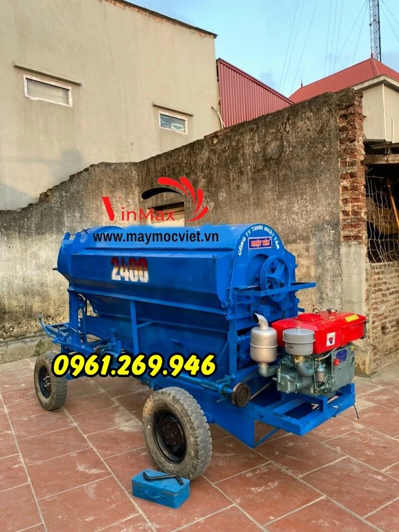 -Thiết kế máy chắc chắn, an toàn, có bệ lốp di chuyển. Máy sử dụng đầu nổ D20, cho năng suất cao, có thể tuốt 1 sào lúa trong 5 phút.