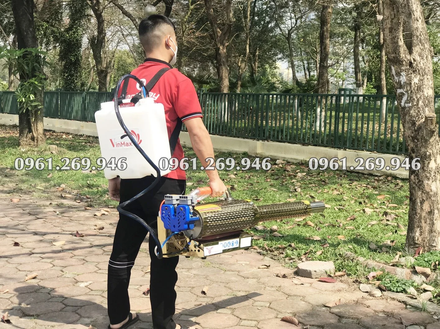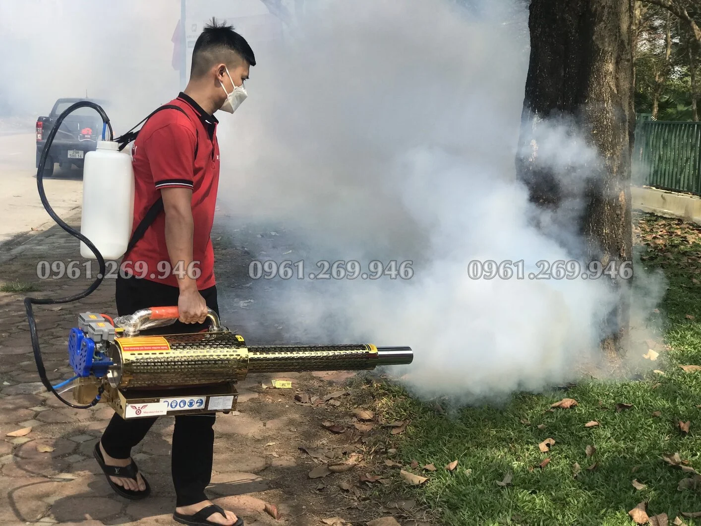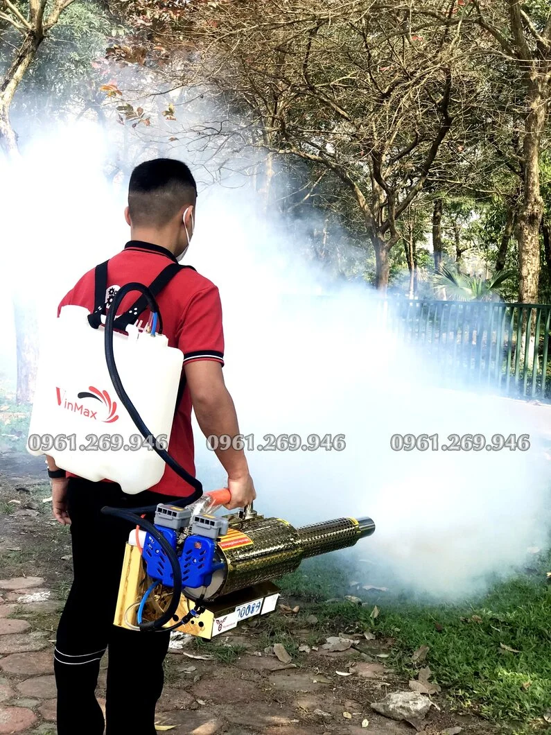 - Khoảng cách phun khói: phun xa 20m, phun cao 8m, bề dày khói 4m