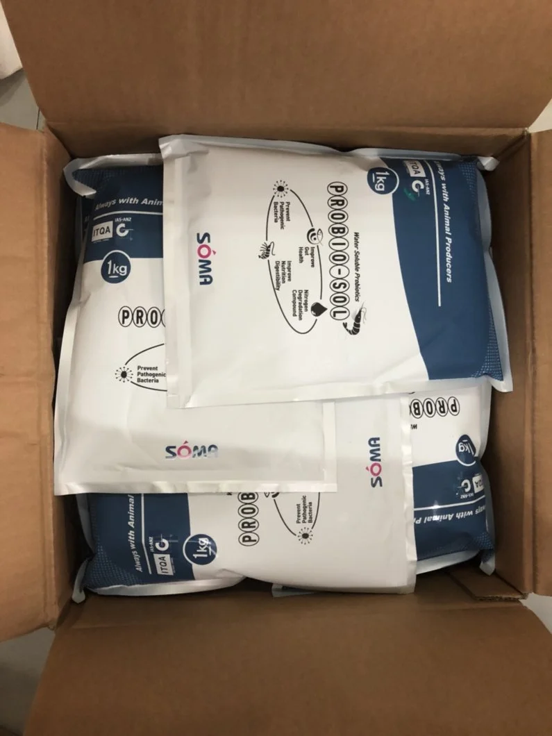 - Trộn sản phẩm với 20-30 lít nước từ ao, ủ với mật đường và sục khí khoảng 2 giờ sau đó phun đều khắp ao.