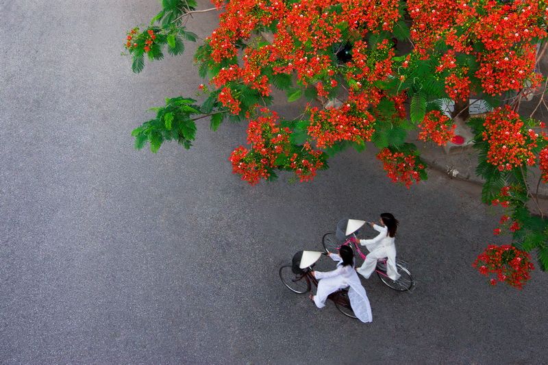 Tháng 5 - mùa hoa phượng vĩ. Màu hoa đỏ thắm xen lẫn sắc nắng vàng tinh khôi, đẹp đến nao lòng. Không gian rực rỡ của mùa hoa đưa ta về một thời đã qua với những kỉ niệm chất chồng.
