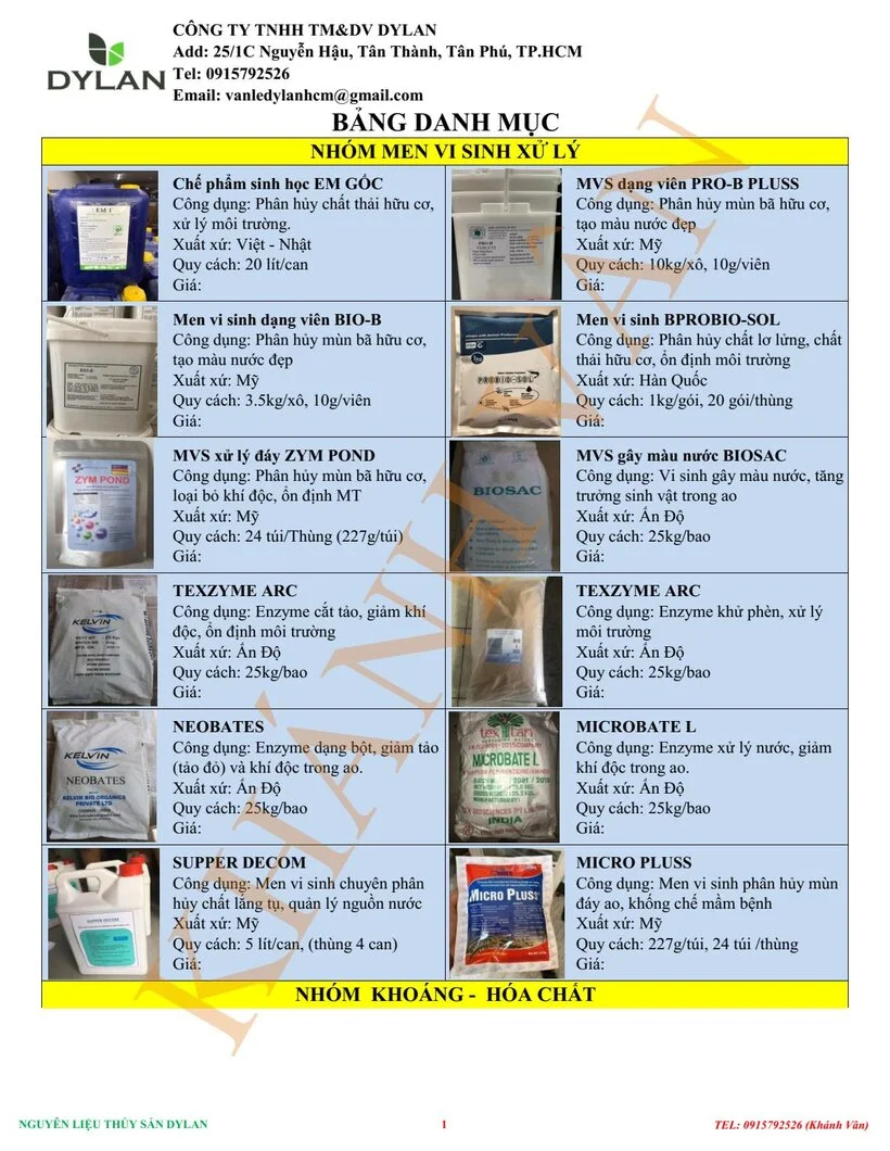 Ngoài ra, công ty chúng tôi cung cấp tất cả các loại nguyên liệu dùng trong Nuôi trồng Thủy sản: