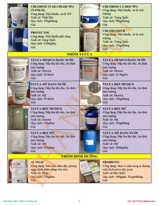 - Dòng diệt khuẩn: Chlorine, TCCA, BKC, PVP Iodine, Wirkon, Protectol, Thuốc tím, Pronopol, Chloramin B
