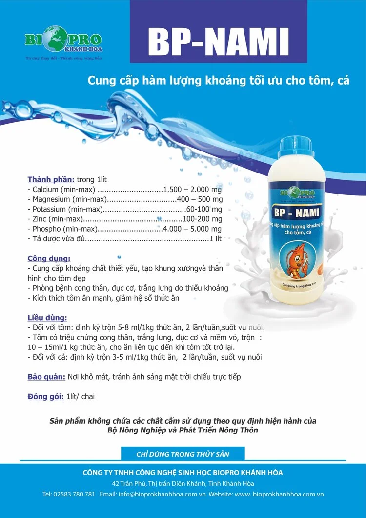 - BP Nami – Khoáng sữa cung cấp hàm lượng khoáng tối ưu cho tôm, cá