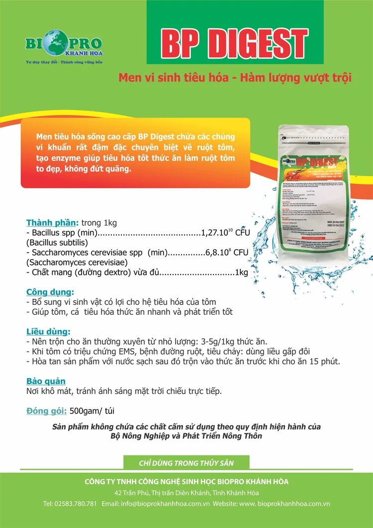 - BP Dighest – Men vi sinh tiêu hóa sống giúp nong to ruột tôm.