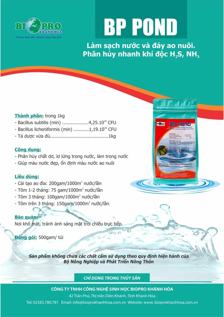 - BP Pond – Làm sạch nước và đáy ao nuôi. Phân hủy nhanh khí độc H2S, NH3