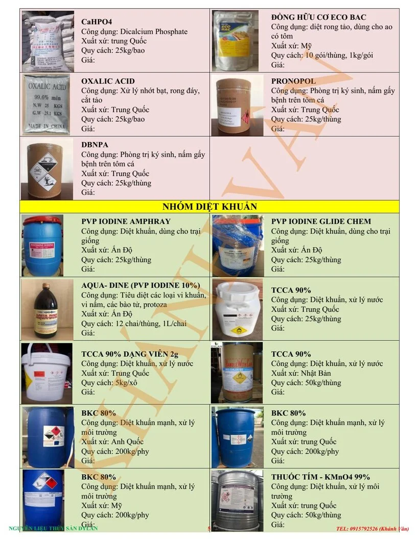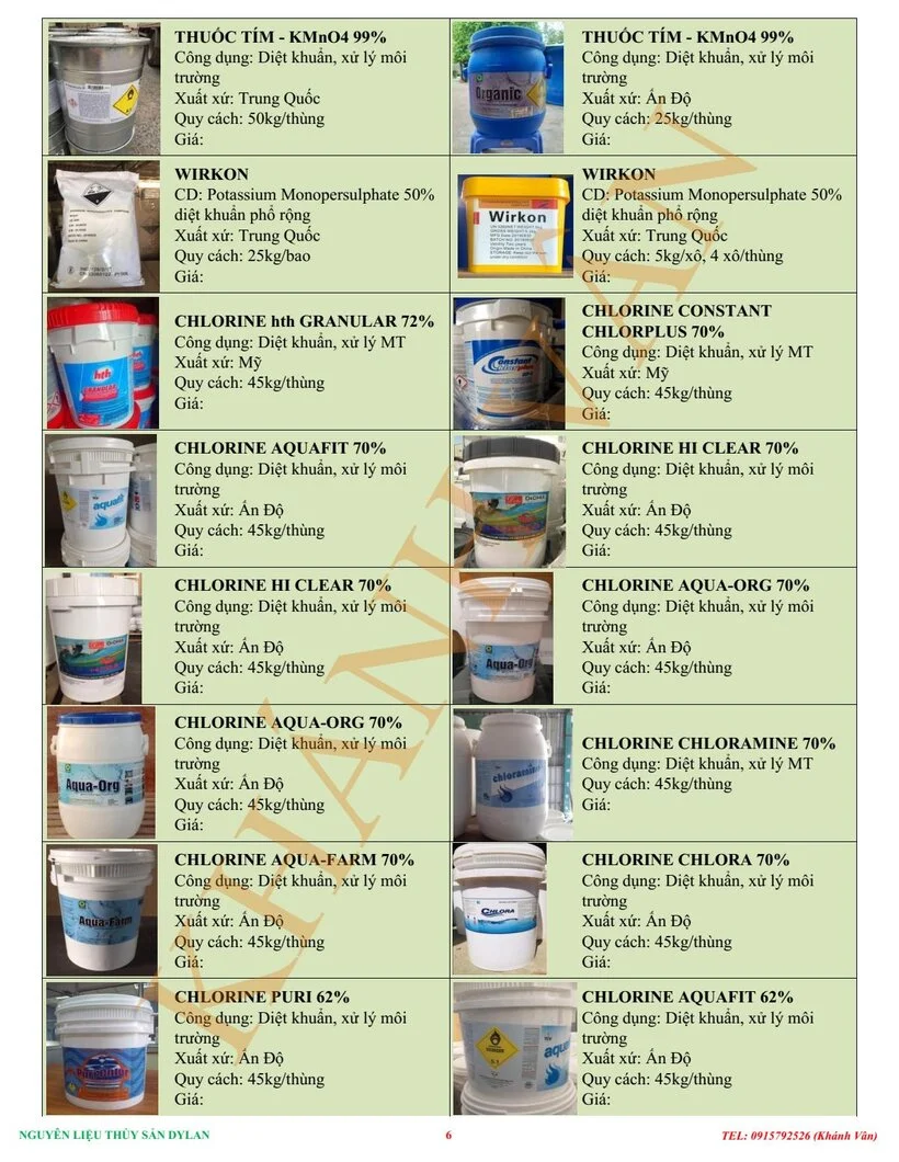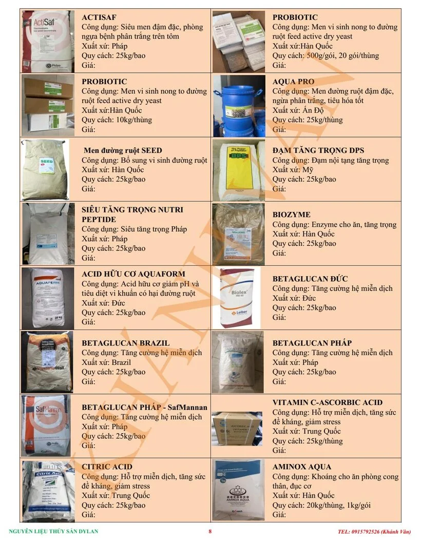 Công ty TNHH TM&DV DYLAN cung cấp đa dạng các mặt hàng nguyên liệu dùng trong Nuôi trồng Thủy sản. Chúng tôi xin gửi đến quý khách hàng danh mục nguyên liệu của công ty. Kính chúc quý khách hàng luôn có những vụ mùa bội thu!