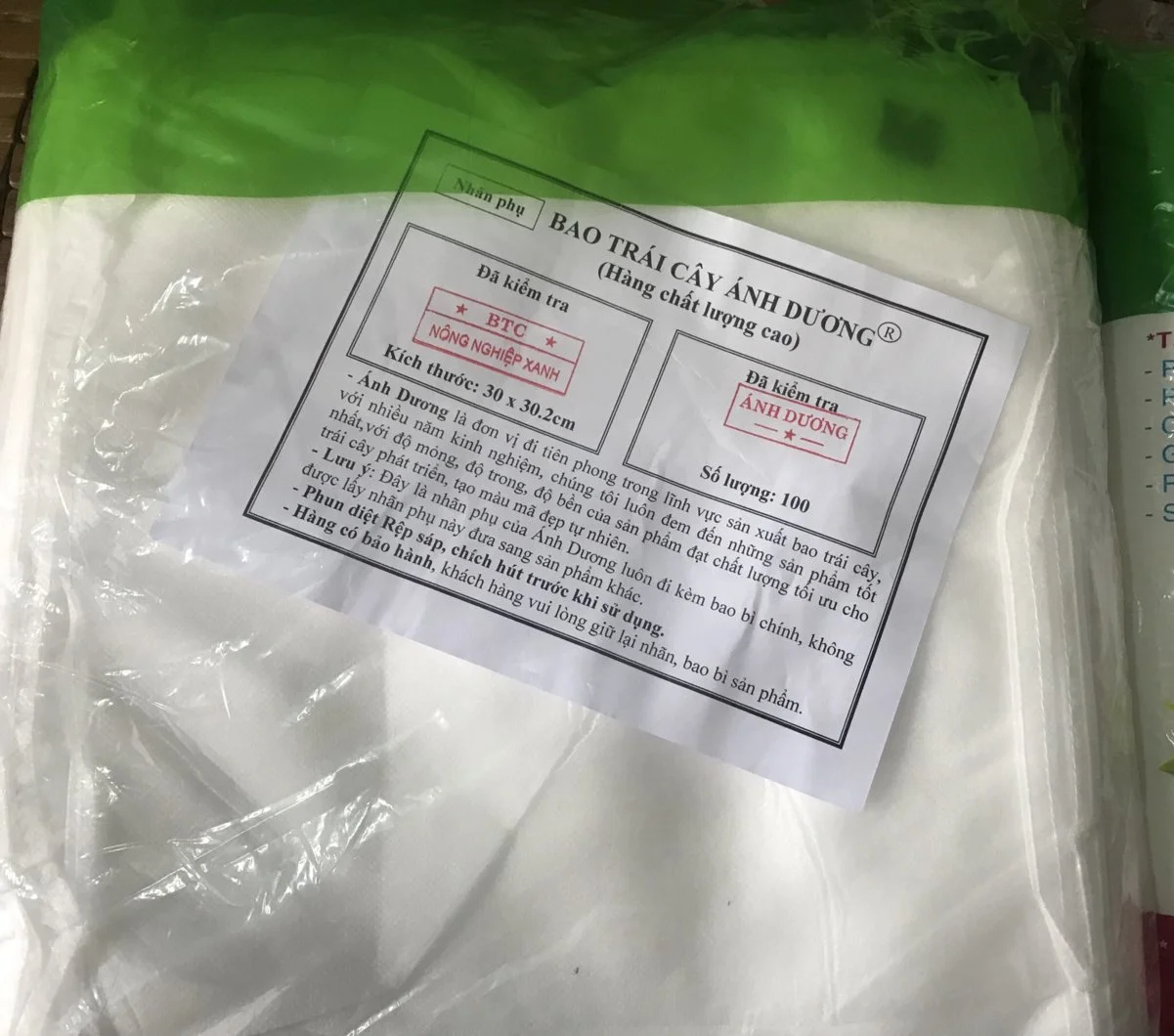 Túi bọc trái cây có tác dụng bảo vệ trái bưởi danh xanh không bị tác hại của sâu bệnh, tránh được ánh nắng trực tiếp của mặt trời chiếu lên bề mặt trái giảm tỷ lệ rám nắng cho trái.