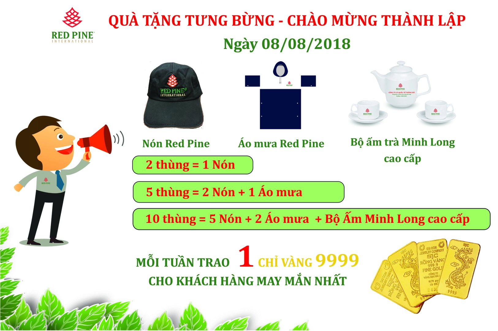 2. Mua 5 thùng tặng 2 NÓN Red Pine + 1 ÁO MƯA Red Pine