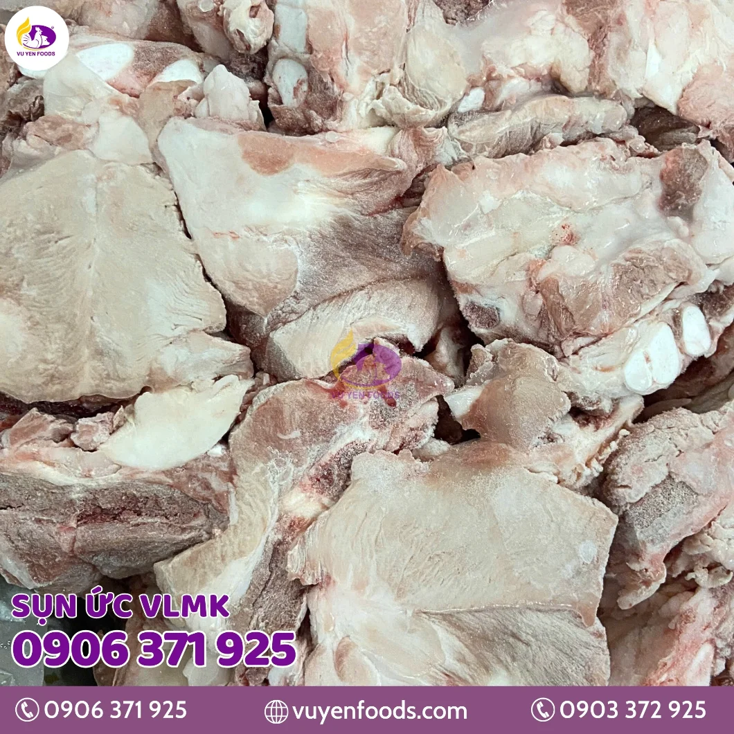 Các sản phẩm heo đông lạnh như: Sườn heo, ba rọi, nạc vai, dựng heo, tim, bắp giò, chân giò,...