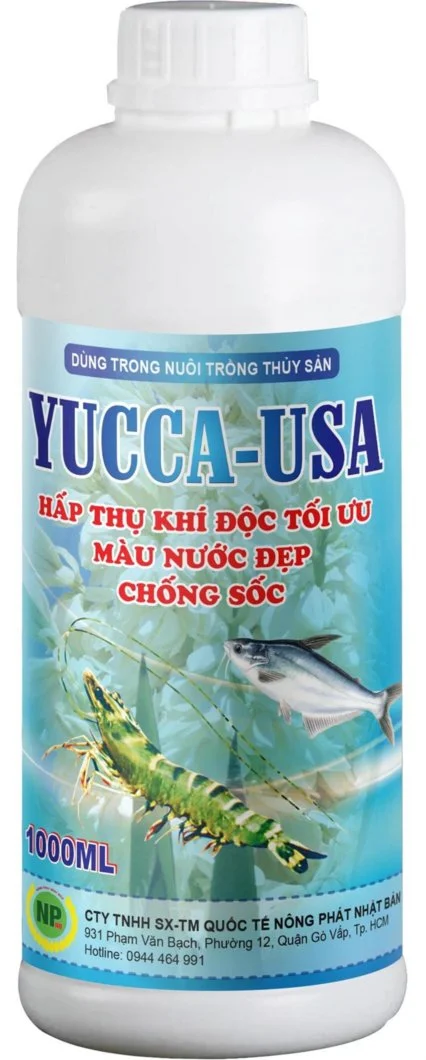 Sản phẩm với thành phần từ dịch chiếc cây yucca schidigera với công dụng: Giảm mùi hôi trong ao do bùn đáy ao dơ. Giúp hấp thu khí độc như NH3 trong ao nuôi.